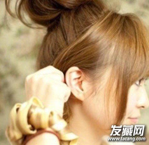 步骤五:加以整理,一款韩式的丸子头就出来了,简单又甜美,好时尚哦!