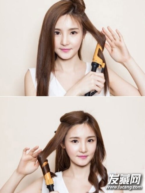 step1:首先将直发用卷发棒烫卷一下。