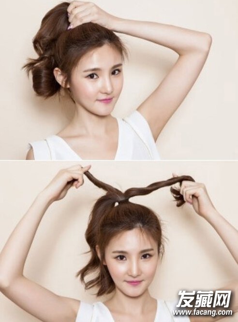 丸子头扎法步骤: