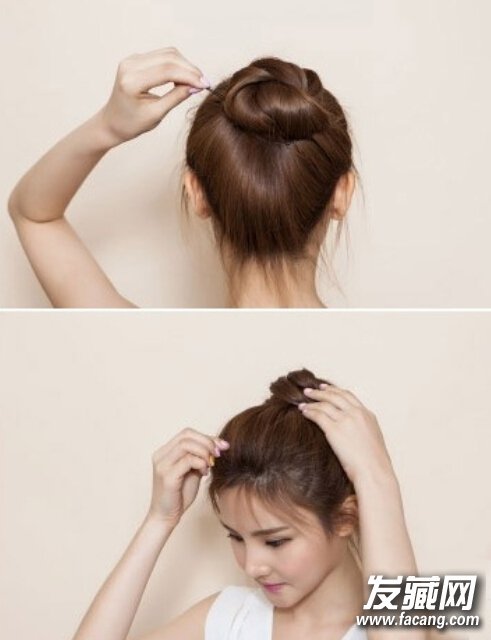 step10:一直扭转最终形成丸子头,用发夹固定好。