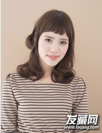 前额的刘海剪裁出别致的弧度,露出半截额头清爽修颜。半扎发可爱清新。
