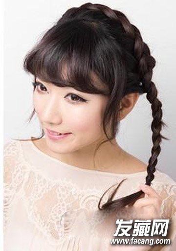 耳前的头发编成蜈蚣辫式,注意编的蓬松粗糙些,另外脸颊两侧留些碎发会更可爱哦。