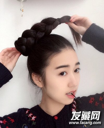 步骤3、将编好的麻花马尾绕着发根弄成丸子形状;