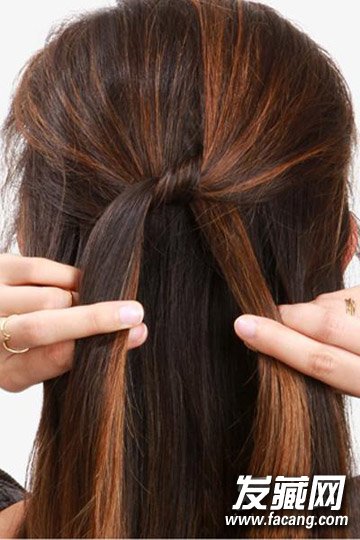 step 1:从头顶两侧取出两缕头发,然后在脑后打一个结。