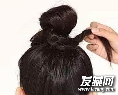 STEP 6:最后将小辫子绕在花苞上,发尾藏进皮筋里面,清爽的花苞丸子头完成了!