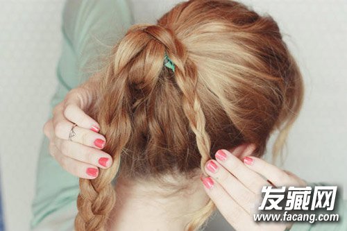 step 4:先将一束编好的发辫缠绕到皮筋处,缠紧!