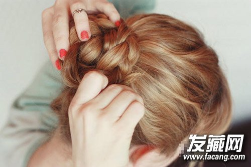 step 6:再将另一束发辫以同样的方式缠绕到刚才的发辫上,增加分量感。