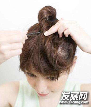 步骤一:将头发绑成高马尾,扭转成发辫后用发夹固定在头顶处。