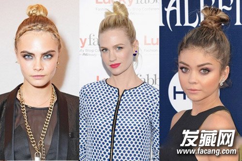 Sarah Hyland利用辫子搭配发髻造型,如果你的发量不多就可以参考这个小技巧,编条辫子缠绕在四周增加丰厚感,让团子头看起来不那么单薄。