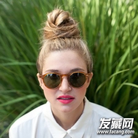 这就是小编为大家带来的法式丸子头扎发。立体感丸子头高高耸立,展现出清爽时尚活力。一抹浅浅的纯色为你的时尚指数增色不少哦。