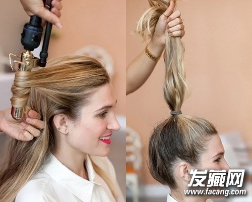 step4:将全部头发束拢后绑成高耸的马尾。