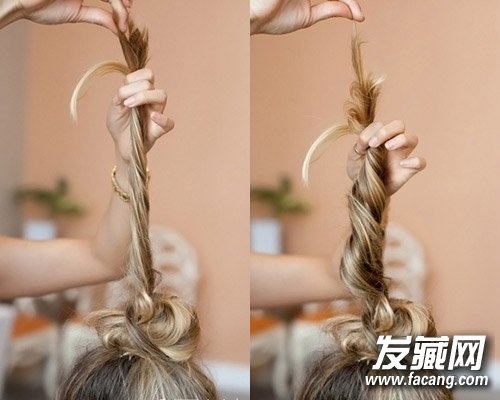 step5:将发束分成几部分后扭转成发辫。