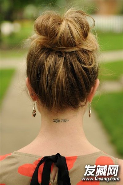 不同的丸子头能展示各种不同的气质,这款简单的丸子头看上去很甜美,松散的外观慵懒自然,非常适合少女的一款丸子头扎发。丸子旁边还可以配带一个小小的发饰尽情展现女孩甜美个性。