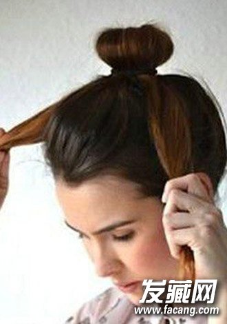 丸子头扎法图解step8:将剩下的头发分成两股。