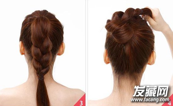 第四步:将麻花辫绕着扎起的位置转圈圈。