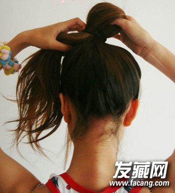 step 3:在用皮筋固定的过程中注意不要将发尾从皮筋中拉出。
