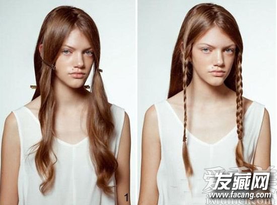 step2.将左右两撮头发各编织成三股辫。