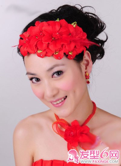 唯美爱情风车型红色花环新娘发饰 高贵典雅。