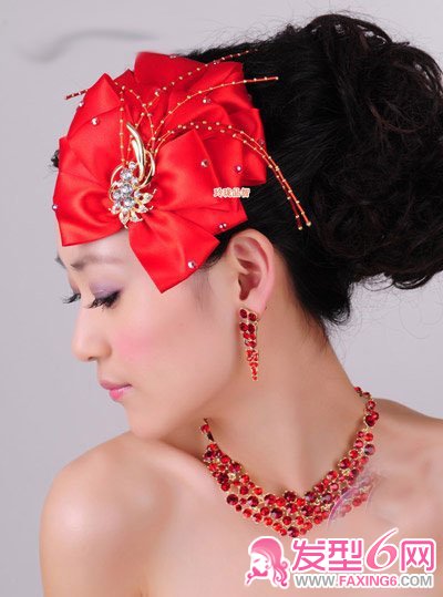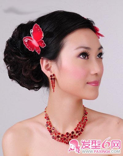 蝴蝶仙子红色新娘发饰 简约古典范。