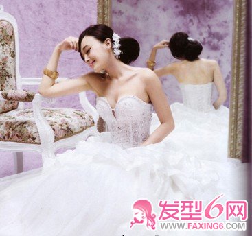 大大的低发髻利用白色发饰的点缀更温馨甜蜜。