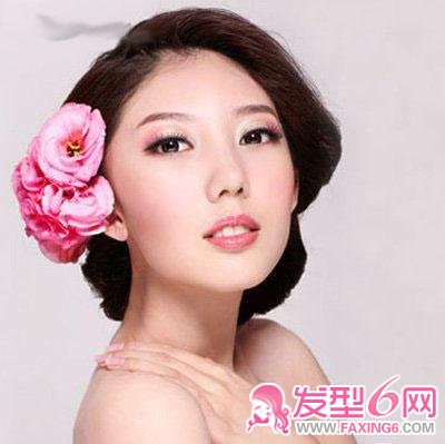 新娘发型点评粉色玫瑰搭配的日系新娘造型,娇媚清纯。