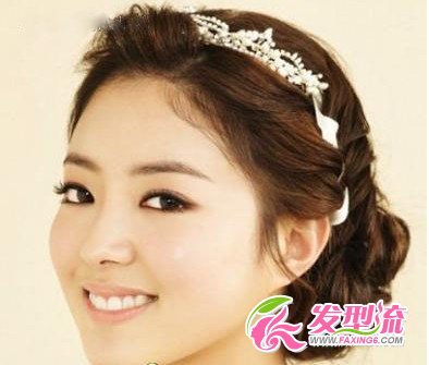 韩式编发在新娘发型上很常用,它使发型更加立体富有层次。低发髻的优雅,珍珠头箍的高贵,打造出公主气质的新娘发型。