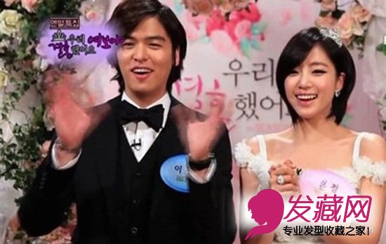 “鲸鱼夫妇”中恩静同样也是“短发控”,刚好到脖子处的长度,侧分的长刘海,增添气质又能修饰脸型的新娘发型哦!搭配皇冠更加可爱。