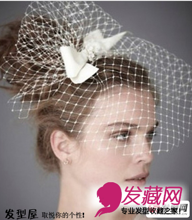 很有欧式典故春情的一款新郎发型,高盘发发髻清新而又空气,佩戴通明发网头饰为新郎的红颜浓艳打造了奥秘与庸俗。新娘发型设计图片