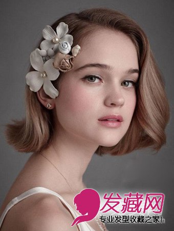小编点评:短发的新娘们不用烦恼没有好看的新娘发型了,将斜分的长刘海制造出优美大气的弧度,充满女性的柔美妩媚。将另一侧的头发掖至耳后别上高贵的花朵发饰,犹如仙女般纯洁优雅。齐颈的中短发更是干净利落。
