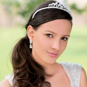 无论婚礼是在室内还是户外举行,新娘都希望能够做最迷人的公主,活泼清爽的马尾辫,凸显出新娘纯然清雅的质地,如果担心式样略显清谈了一点,配上一顶精巧雅致的头冠,就会让整个发型设计 变得生动起来。