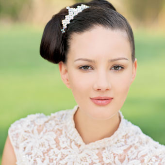 新颖造型使整个发型风格既简洁干净,又富有装饰性,如蝶翼般精巧的发型有着童话般的美丽幻想,纯真俏丽,而极具雕塑感的设计又让新娘有了几分与众不同的个性表达,在阳光明媚的清新户外,造型古典而充满青春气息的发型,能够赋予新娘温柔甜美、活泼俏丽的气质。