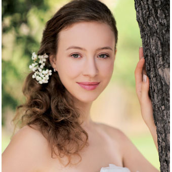 舒畅清新的自然环境里,新娘可以用轻松的不对称式微卷大波浪,充分展露女性浪漫温柔的特质,柔软发卷好象天然养成,再点缀几束小野花,发型就多了几分生趣与灵动。