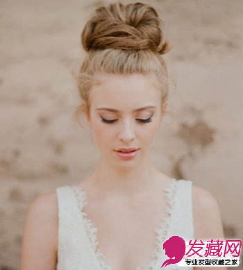 这一款简单的新娘发髻不加任何的装饰,简单低调却丝毫不显呆板。将全部头发在脑后盘成一个发髻,将周围的小碎发固定,非常细腻精致。整个造型流露出清新自然却又高贵典雅的气息。