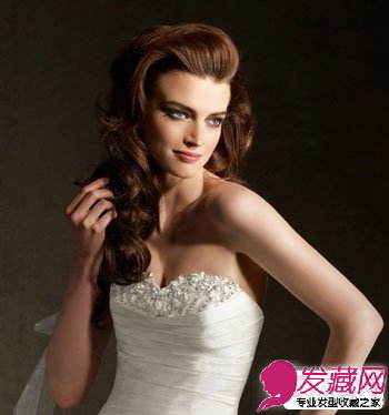 刘海垫高向后梳,打造出立体感,长卷发自然垂下非常有坠感,给人一种活力四射的感觉,没有任何装饰,低调而不失高贵典雅。