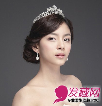 编辑点评:中分的刘海设计能修饰过高的前额,发髻扎得不算高,但一配上银白色的皇冠,就能带出一种女王般的气场,吊坠的耳饰能增添几分优雅的感觉!