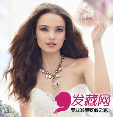 浪漫自然的长卷发是一款极具高贵和典雅的新娘发型,也是今年最流行的新娘发型之一。搭配华丽的水晶链饰,在带给新娘优雅的同时,还营造出了一种神秘高贵的美感。