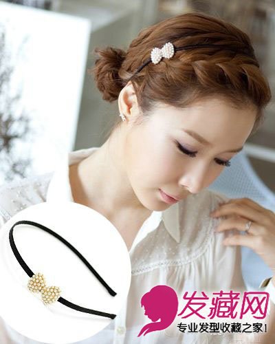 模特的编发盘发非常好看,清新脱俗,再点缀上这样一款极简的发箍,小小的蝴蝶结甜美可爱,成为整款发型的点睛之处。