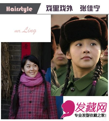 在革命或乡村题材的电视剧里,佳宁多次尝试了双麻花辫这种改革开放前的流行发型。两道三七分刘海滑过额边脸颊,或是带着东北大帽子的她,细细看来也自由一番滋味。