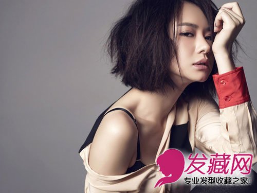 栗色短发烫出玉米烫质感,略显粗糙蓬松的短发衬托出一张精致小V脸。