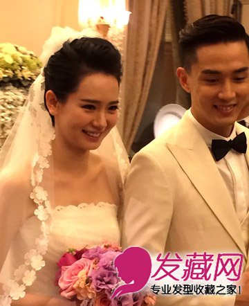 作为短发美女,戚薇的新娘发型如同之前曝光的婚纱照一样,选择了个性的短发盘发造型,前面垫高的发型很是时尚帅气,搭配抹胸的婚纱超显高贵气质。新郎李承铉梳着帅气的分头,郎才女貌很是般配。