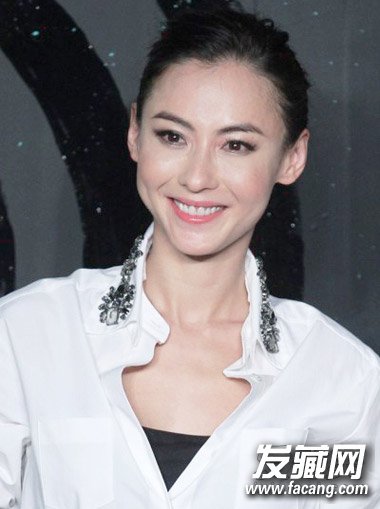 近照中的张柏芝已经不复当年年轻,瘦得有点夸张了,这款高扎马尾辫发型也是她在活动中的最爱了,将刘海全部弄起来,显露精致小脸,直发简单干练。
