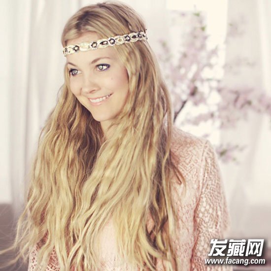 如果你的婚礼是在具有异国风情的海滩上举行,宾客们都可以光着脚踩在沙滩上,那这款嬉皮风的波浪发型很适合哦。