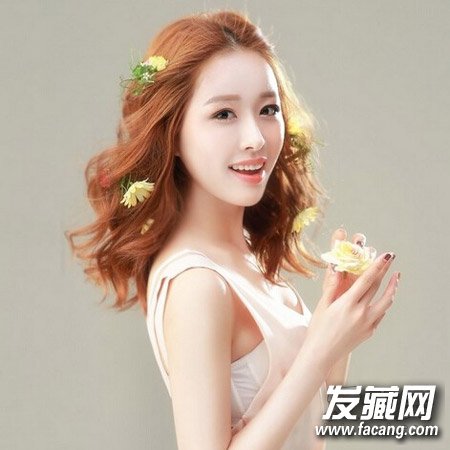 点评:新娘也可以将头发随意披散着,这样更有女人味哦,在时尚的甜美新娘发型上,加上花朵点缀,让你整个造型更唯美。
