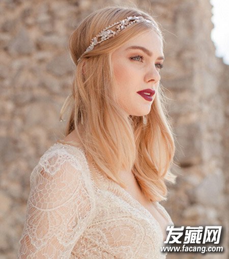 对喜欢披肩发的新娘而言,这样一款新娘发型也很不错呢,瞬间变身希腊女神,气场全开。