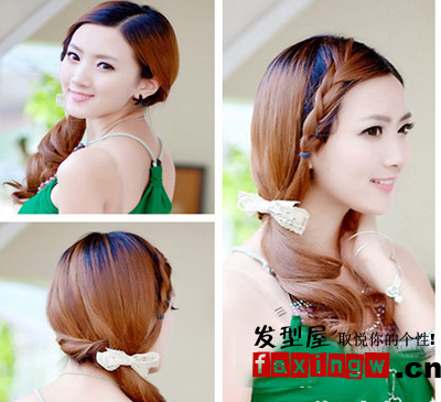 单侧马尾营造出非常纯净、活泼的气质,在发辫的中部松松的帮上或者扎上一格发饰,营造出随意的慵懒效果最赞。圆脸女生扎这款发型很清爽,超可爱。
