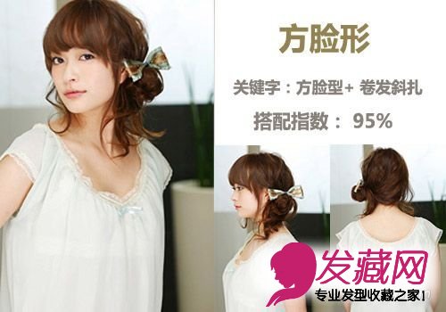 脸型剖析较阔的前额与方形的腮部.方脸形缺少柔和感,做发型时应注意柔和发型,可留长一点的发型,长直披发不宜留短发,当然如果MM爱好短发也可以,那就增添发型的柔和感,比如增添卷度。图片中的长卷发增添了柔和感,而且斜边扎发也使MM看起来更加活跃。