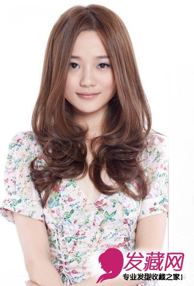 中分的长卷发无疑是最适合圆脸的MM了,首先是长长的刘海发片能够挡住过于圆润的脸部,卷卷的发尾很能修饰脸型呢。