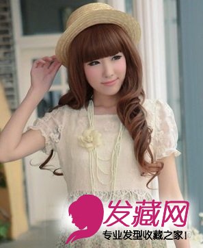 齐肩的长卷发,发尾设计使用螺旋卷发,规则的卷发形状将女生圆脸脸型紧紧包裹住,整齐的直发平刘海也同样起到修饰圆脸脸型的作用,这款长卷发女生发型发量非常多,圆脸的视觉效果很不明显。