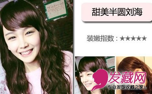 半圆刘海,巧妙地遮住额头,也就起到了润色脸型的浸染,既可以显得年青又适合任何场所,所以受到良多爱美男生的追捧。搭配长卷发,更使甜美度增添不少。