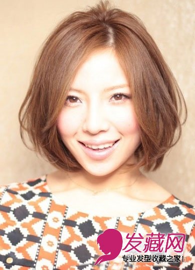 这款日系短发波波头,采用中分的八字形刘海,能使脸型显得修长一些,两侧头发自然下垂以遮住过宽的脸颊,达到绝佳的修脸型效果。